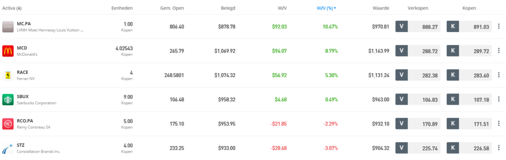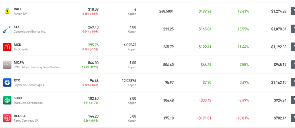 I am very happy to see that Constellation Brands recovered, it should perform well in the summer of course. The average result is now a bit disappointing 4,8 percent, but when RCO picks up, we should be looking a lot better.